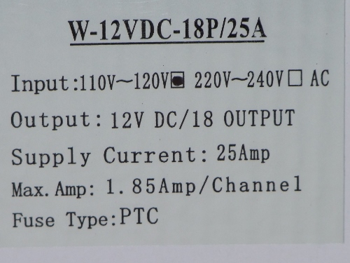 18 Channels 12VDC Regulated Distributed Auto reset Fused Wall mount Power Supply panel individually fused 25AMP output