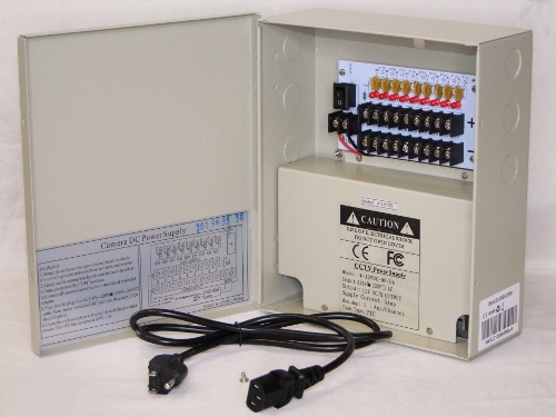 New U.S. Security solutions wall mounted 12VDC-9P/5Amp 9 Channels Regulated Switching power supply Panel: 110V~120VAC input 12VDC 5Amp Output 9 Port 1.1Amp Max output per Channel DC Wall mounted CCTV Security/Alarm Power supply panel Provide 12VDC distributed via Nine (9) Channels PTC resettable fuse protected outputs for multitude of purposes powering CCTV Cameras, heaters and other video accessories. Our power Solutions technologies for professional security system applications, innovative and integrate with any installation to maximize overall performance and efficiency.