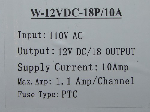 Lot of (4) New 18 Channels 12VDC 10AMP : NEW High Output 18 channels 12VDC 10AMP, 1.1AMP Per Channel Switching power supply with Resettable Fuse .
