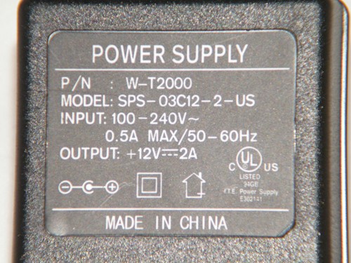 MGT 12DC2000, 12 VDC, 2000 MA, 2.1 MM Coax. Plug, UL/CSA Approved