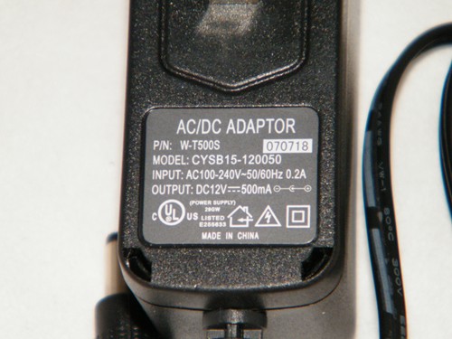 MGT 12DC500, 12 VDC, 500 MA, 2.1 MM Coax. Plug, UL/CSA Approved