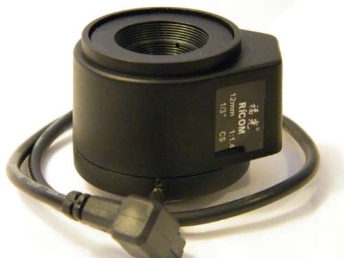 Ricom 12MM CS Auto Iris Fixed Lens :Simple Ricom 12MM Close up View Auto iris for better light control, CS Mount Lens for use with Box Cameras and Regular Cameras. Please make sure your camera will support CS Mount Interchangeable Lenses. If your camera is C Mount it must have a CS adapter .