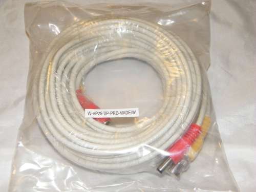 White 25 Feet Premade Siamese CCTV Cable Combines Power/Video in one